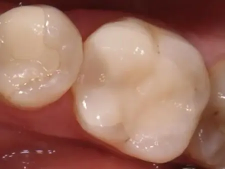 40代女性 奥歯に生じた虫歯を除去したあと自然な色合いのセラミックインレーで修復した症例
